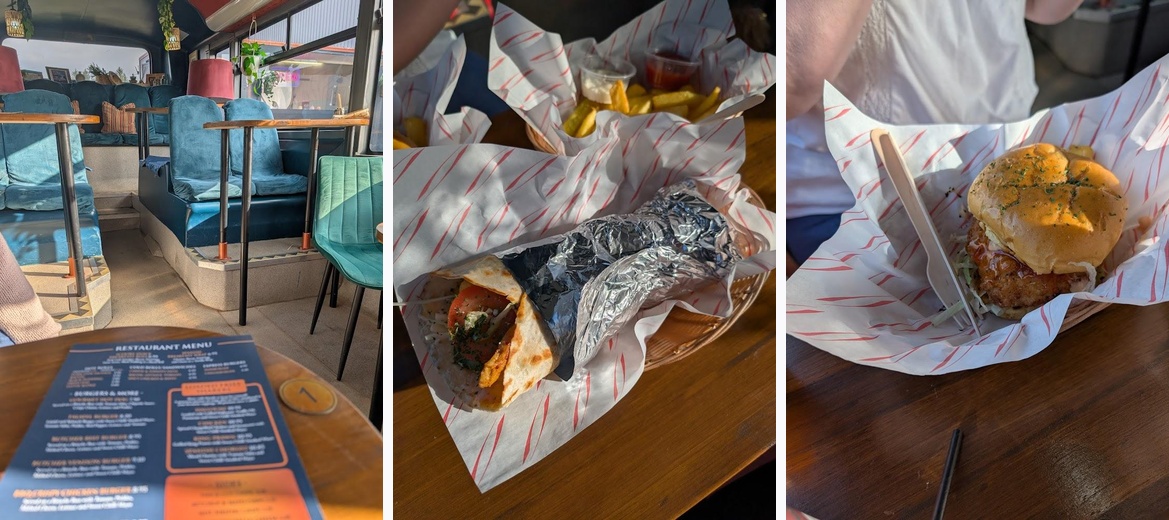 Unreal little find this afternoon. The double decker is a cool touch and food was amazing ! We had the Spanish breakfast wrap, butcher beef burger, hot piripiri chips & fried corn cobs. The coffee was really lovely too! Quick service, lovely staff and very reasonable prices. Thank you for an amazing experience we will definitely be back.